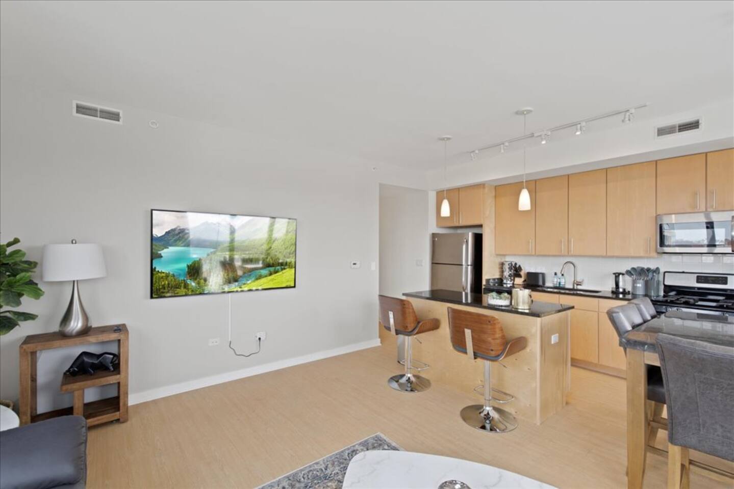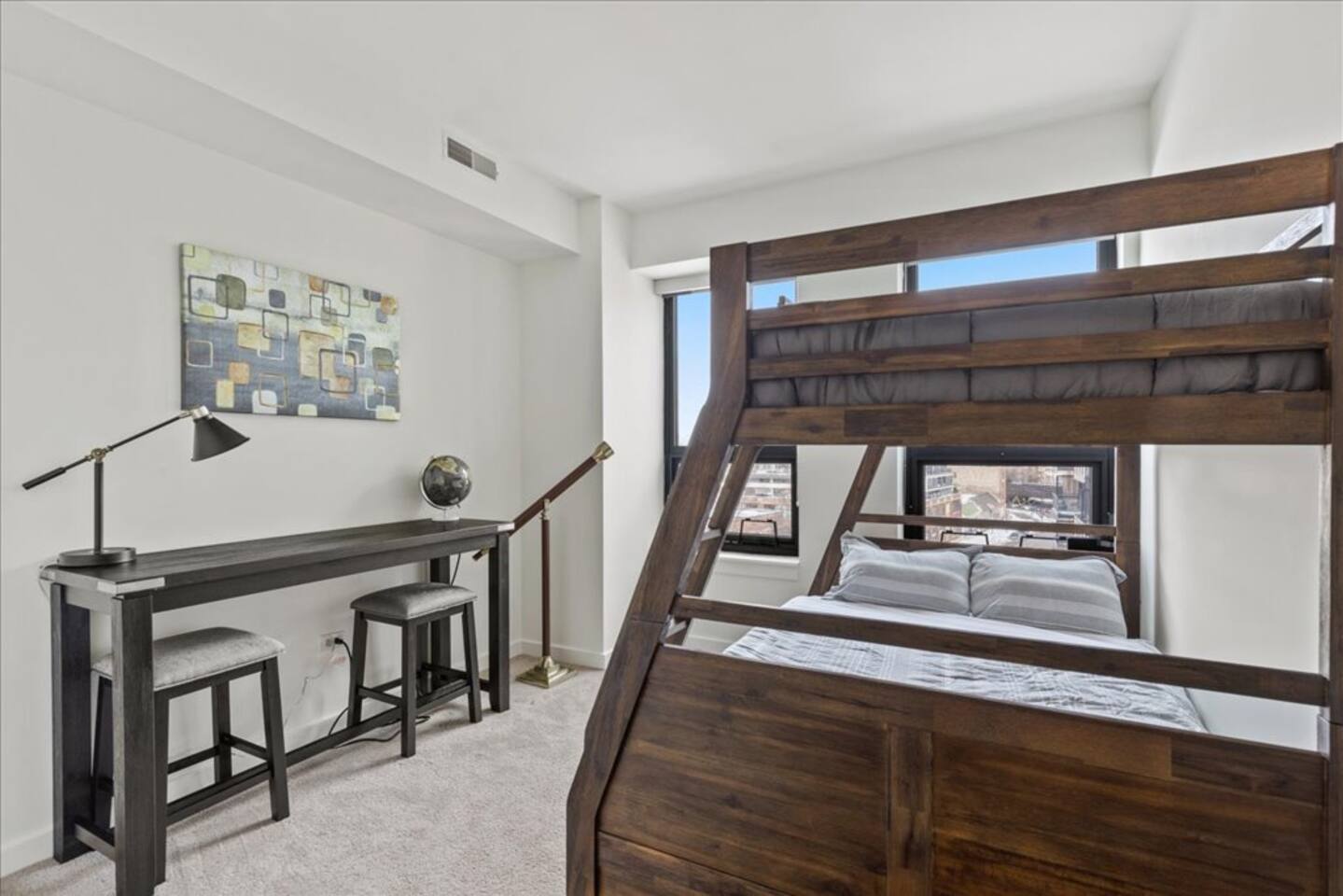 Modern-Luxe experience at the Unity of Evanston Condo. Elegant finishes and a sweeping Sky Terrace view. Resort-like amenities with fitness center, outdoor pool, free parking in indoor GAR, biz ctr, and much more. 3 bedrooms, 2 full baths, 1 roll-out bed welcome you to a comfortable stay near Northwestern University, Loyola, and Kellogg and minutes from Chicago Downtown. This unit is all about bring a family together in UNITY!